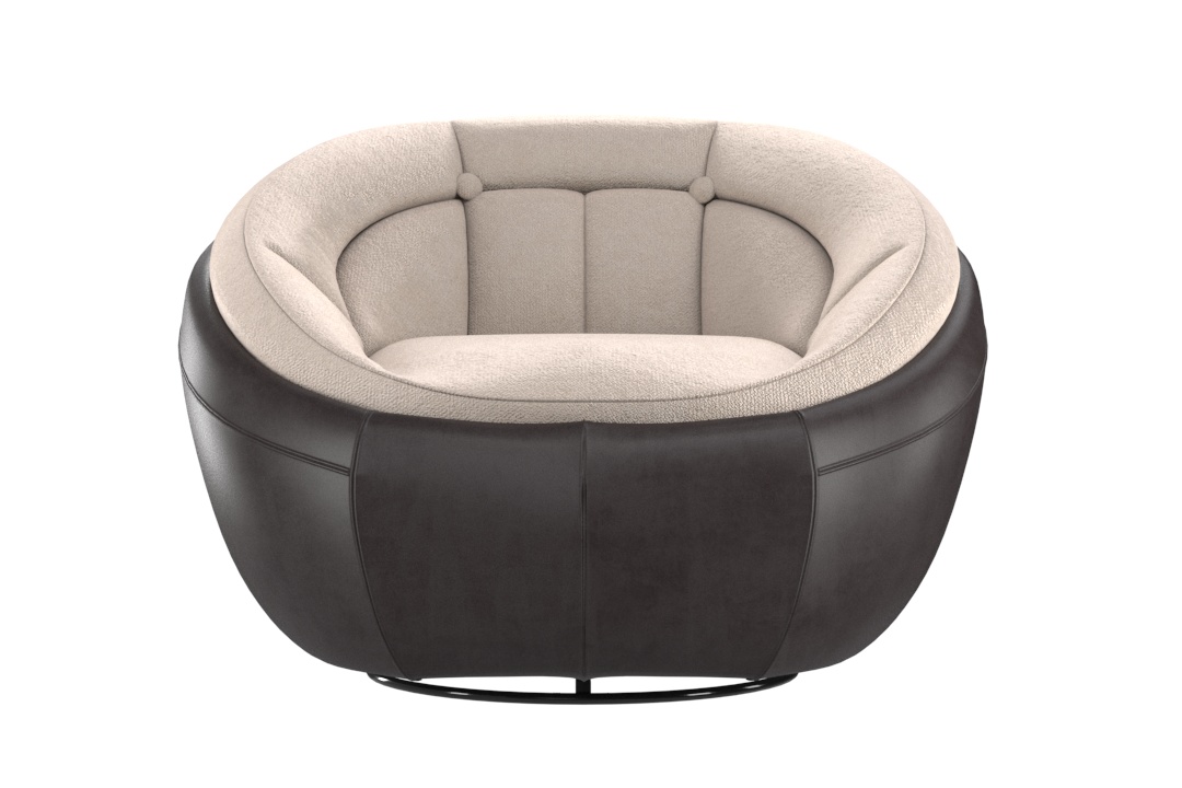 OSLO, a one-of-a-kind sofa that redefines luxury and functionality. Crafted from premium leatherette, this sofa boasts an innovative oval-shaped design concept that is both modern and timeless. The colour combination of Beige and Black adds a touch of sophistication and versatility, making it a perfect fit for any interior decor. What sets OSLO apart is its one-seater feature equipped with a swivel mechanism, offering dynamic seating comfort and flexibility. Experience the perfect blend of style, comfort, and innovation with OSLO.